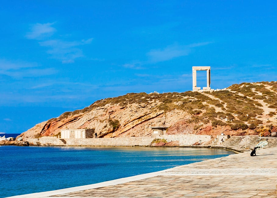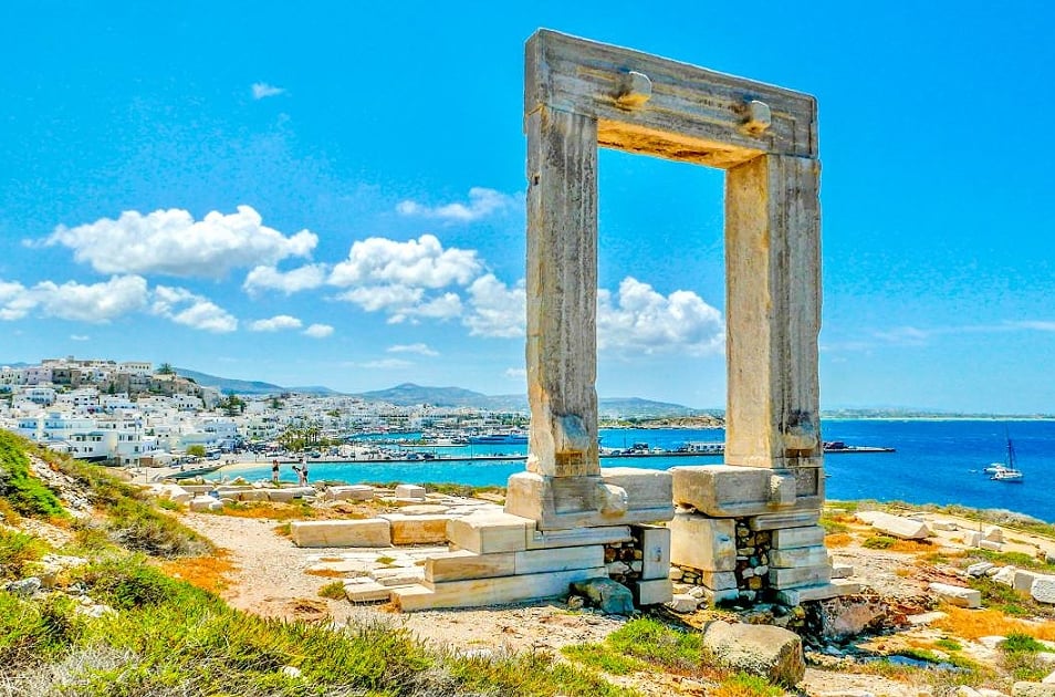 在希臘愛琴海的納克索斯島港口外的小半島上,有一座孤獨而壯麗的石門在海邊矗立兩千多年,原神殿建於西元前6世紀,統治者原打算建一座宏偉的神殿來彰顯島嶼的繁榮,不料政權更迭後,工程被迫停止,神殿的主體石塊被拆去修築後方的城堡,唯有這座由四塊重達20噸大理石組成的門框,因為太過沈重而得以倖存。