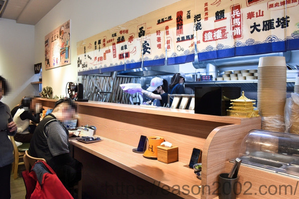 用餐環境乾淨明亮,提供1~4人座位,合適 情侶約會、家庭聚餐、日常用餐 等等,通常麵食館提供的自助式飲料機,大多是一般的可樂(汽水)機,這裡的飲料機有12種不同風味飲品可以選擇,採自助式,無限量暢飲;醬料採用正宗陝西特色美食需佐之調味料,餐具自取。用餐後,採自助式回收。開放式廚房,製餐過程乾淨衛生,空氣中散發出淡淡的麵香,儀式感十足。