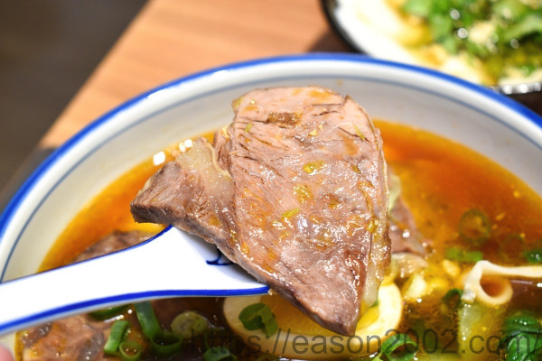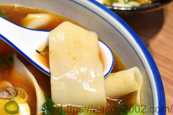 以新鮮紅蕃茄精心熬煮的蕃茄牛肉手扯麵,麵條又寬又長,愈吃愈有勁,正所謂的褲帶麵~讓我又驚又喜,夾一條給孩子吃,就可以飽足了~ (挖,不是只有寬、還很長呢~!!!) 一邊下麵、一邊手扯的手扯麵,吃起來Q彈帶勁;湯頭也是濃醇香,喝起來清爽不油膩,牛肉軟嫩可口。