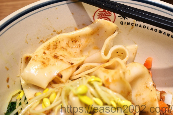 愛吃肉的我們,點了雙肉醬油潑手扯麵,裡面有 油潑辣子、炸醬、臊子肉,上桌混拌均勻後,吃起來口感豐富,帶著不同階段的層次感,有 臊子肉的咬勁、炸醬的香,還有帶著陝西文化油潑辣子的醇,三種不同風味混合的美味,加上手扯麵的Q勁,好吃不膩口。