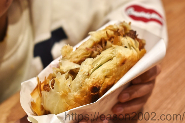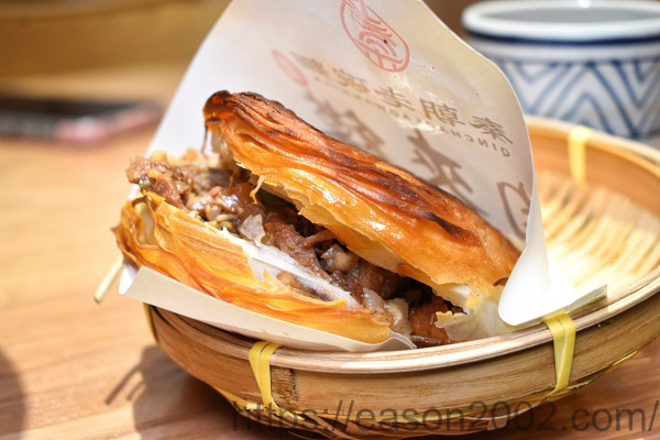老潼關肉夾饃 的餅皮外層酥脆,夾著肉汁豐富的豬肉,吃起來不油膩,是陝西的特色小吃,來到台灣也是廣受歡迎~