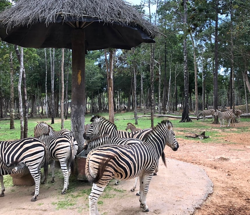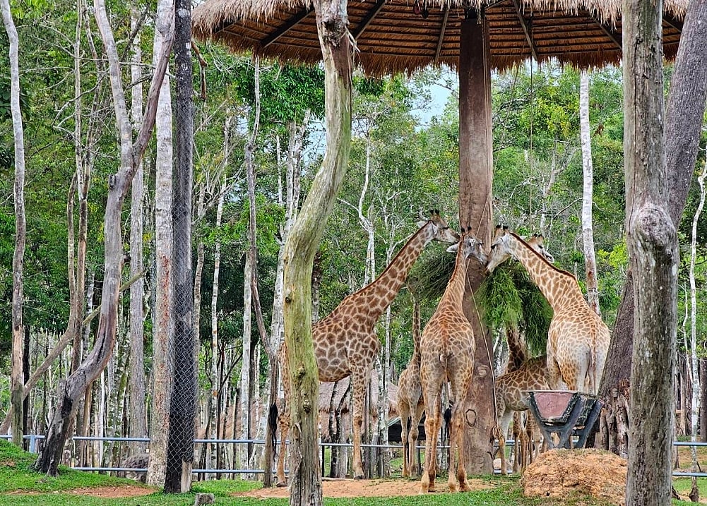 「珍珠野生動物園」是越南最大的野生動物保護園區,旅客乘坐特製的安全巴士進入野生動物園區,可近距離觀察非洲獅、老虎、犀牛與斑馬等,這種觀賞方式能看見動物最自然的行為,而非被困在空間狹小的柵欄中。