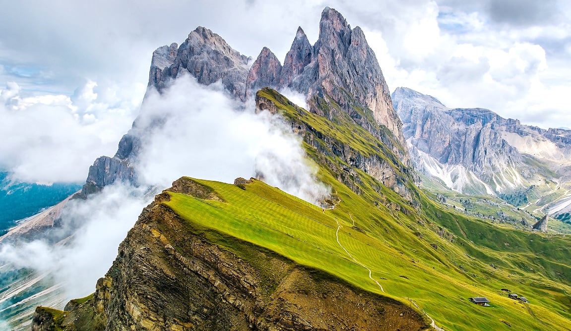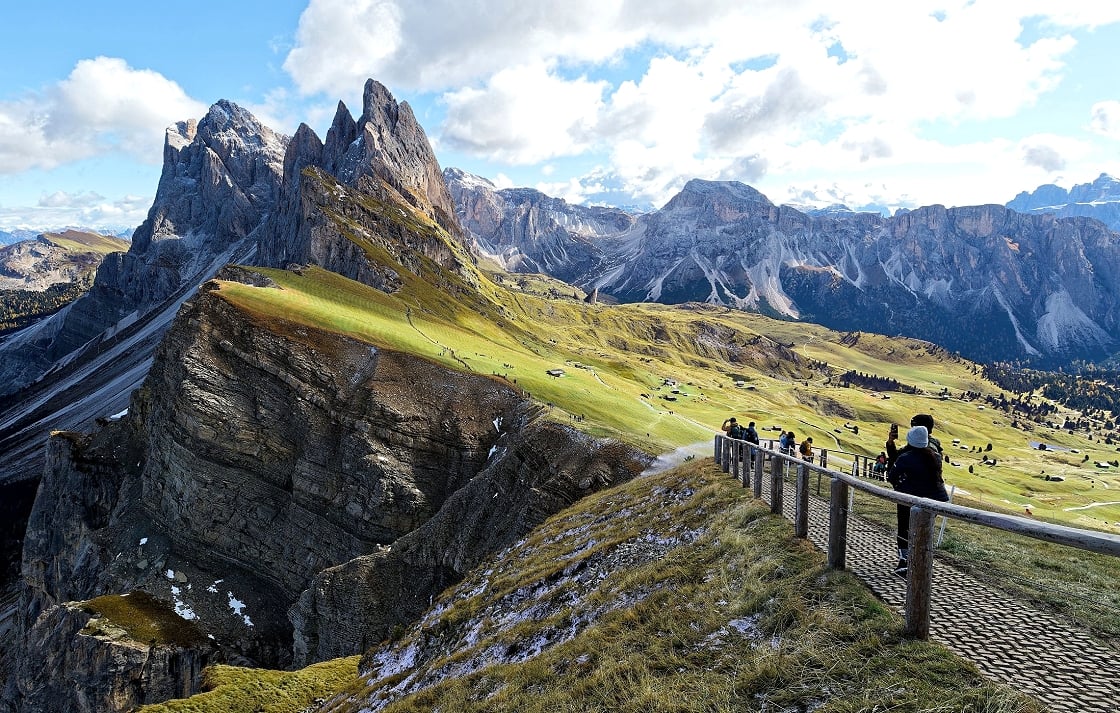 從富內斯山谷中的小村莊聖瑪達萊娜出發,途經寧靜的谷地與翠綠牧場,點綴著傳統木屋,這條如詩如畫的路線不僅是多洛米堤最經典的健行之一,更是無數明信片與旅遊雜誌封面的取景地,被公認是阿爾卑斯山最美村莊之一。