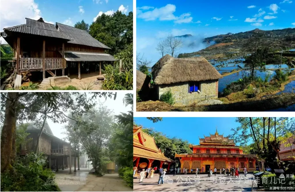 什麼傣家竹樓,上下兩層,底層架空,人字陡坡屋頂,通風防潮;哈尼族蘑菇房,土牆配茅草頂,依山而建,冬暖夏涼;基諾族大長房,竹木雙坡頂,外牆有民族刻畫。
