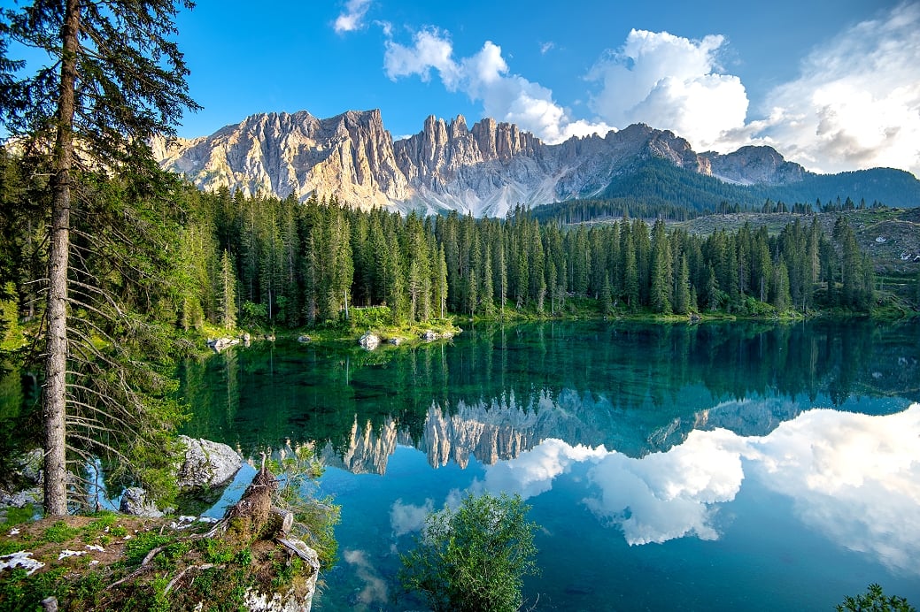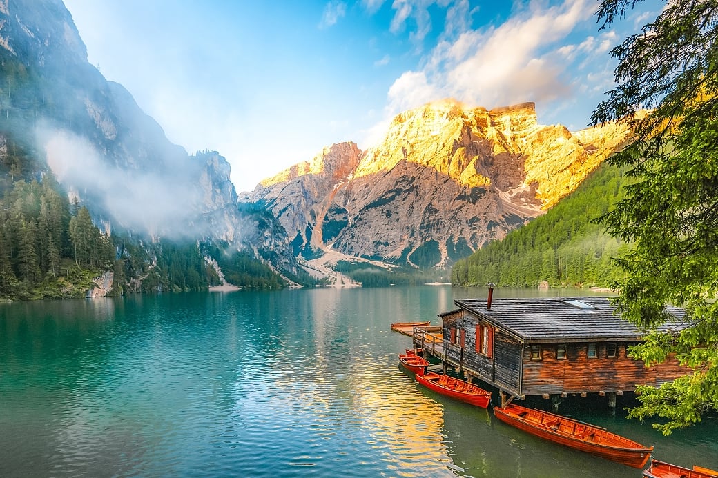 湖水四周被松林與高山森林包圍,氣氛輕幽帶點神秘感,與上述兩個開闊的湖泊風格不同,後方屹立鋸齒狀的垂直岩峰,像是巨大的管風琴,極具幾何美感,這裡不只是一座湖泊,更是一場視覺與神話的奇幻漫遊。