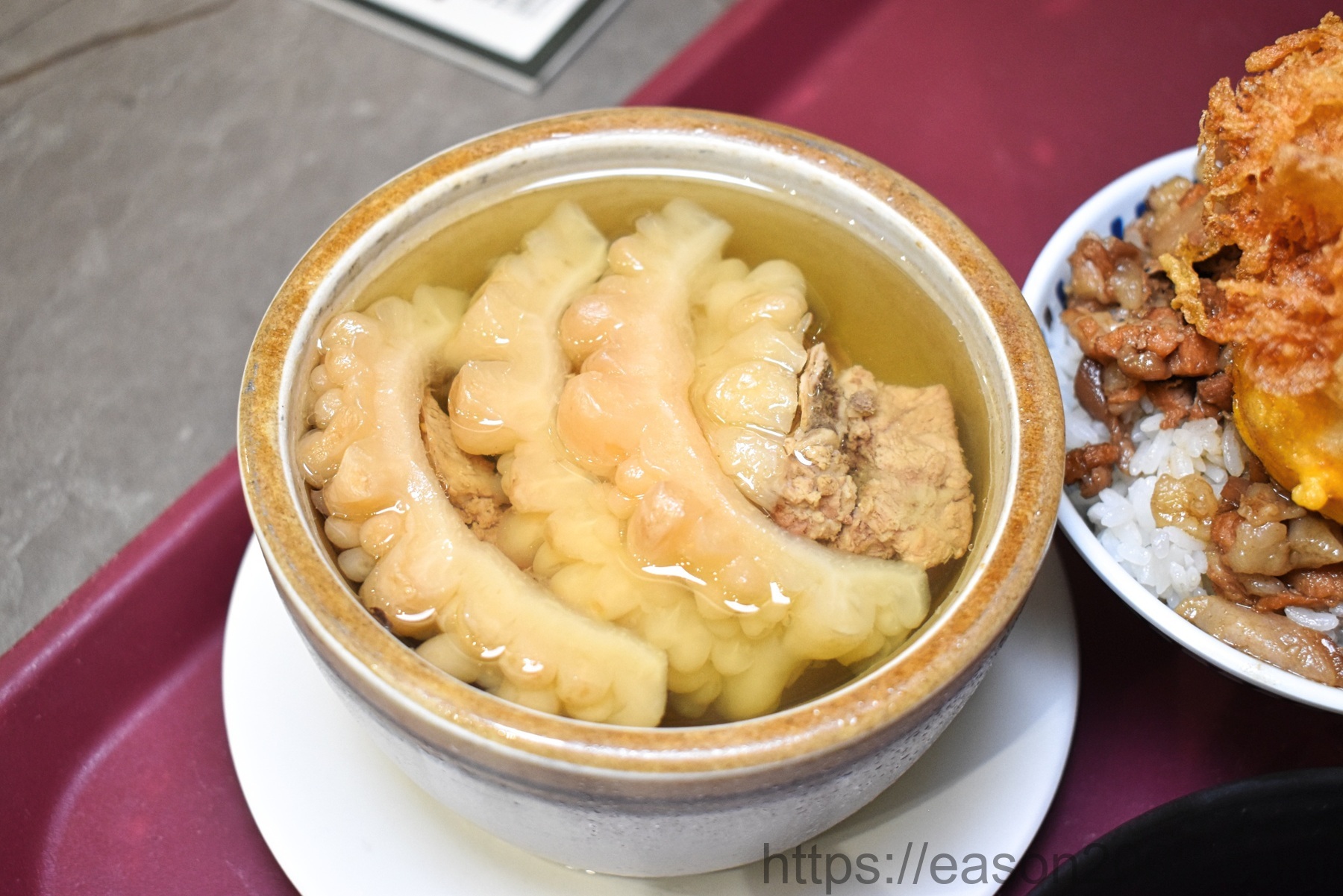 第一次喝到不苦的苦瓜排骨湯,取而代之的是食材的原始甘甜,排骨經過精心燉煮,軟爛易入口,湯頭喝起來清爽不油膩。