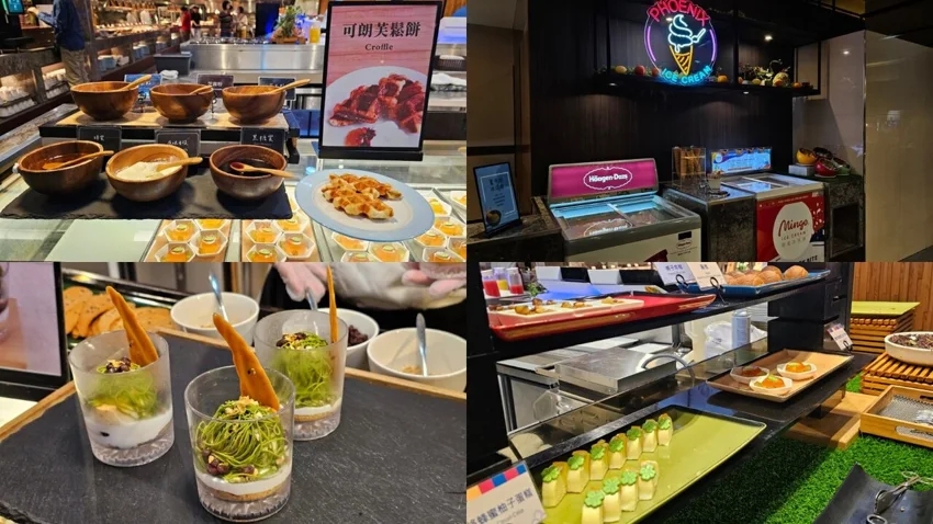 比較讓我們驚喜的是下午茶時段(14:00–16:00)的精選茶點,包括桂圓蛋糕、蜂蜜金棗凍、旗魚鬆蔥花捲,以及每天現場新鮮現做的韓式年糕雞蛋糕(配合首爾美食節推出),外酥內Q,香氣四溢,一出來就被搶光的速度比我預期的還快。