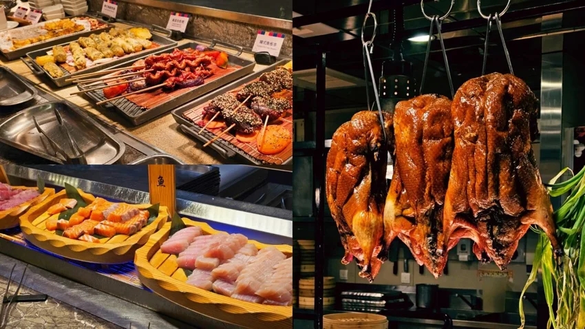 桂冠自助餐廳位於酒店二樓,是礁溪在地知名度極高的自助餐吃到飽,不少宜蘭在地人也會專程來吃。這次我們去,剛好碰上從 3 月 3 日起至 8 月 31 日推出的期間限定——首爾美食節。整體菜色的豐富度真的超出預期,不只有韓式料理,連原本的招牌菜色也完整保留。