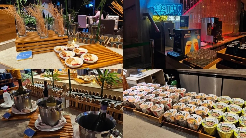 除了招牌特調,現場還有紅酒、白酒、氣泡酒無限暢飲,搭配起司盤與果乾。不用出飯店,直接小酌到盡興,喝完走回房間泡溫泉,這種行程安排,實在太對肥哥肥嫂的胃口了。
