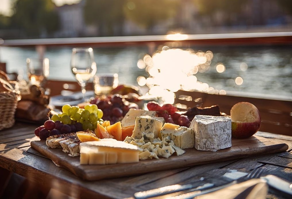 當河輪航向索恩河畔沙隆時,河輪公司在甲板上為旅客舉行一場精緻的法式起司品鑑饗宴,在移動的河景中,感受舌尖上的法國風味。