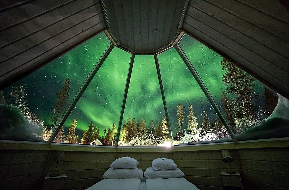 拉普蘭地區是一個跨越多國的北極圈地區,可看到永晝及永夜,被列入世界自然遺產,可安排住在芬蘭專為追尋極光而打造的度假村,入住屋頂景觀玻璃屋,讓整片天空呈現在眼前,無懼寒冷可躺在溫暖的床上,舒適欣賞極光及璀璨星河,是人生獨特又難忘的享受啊!