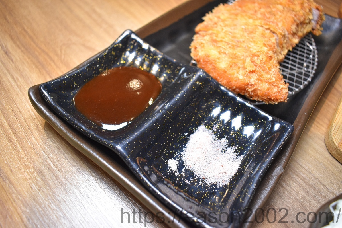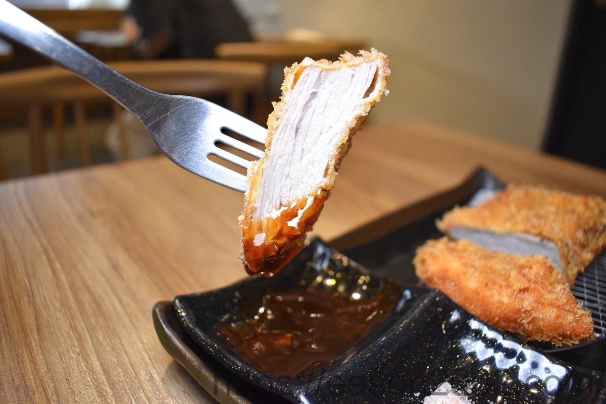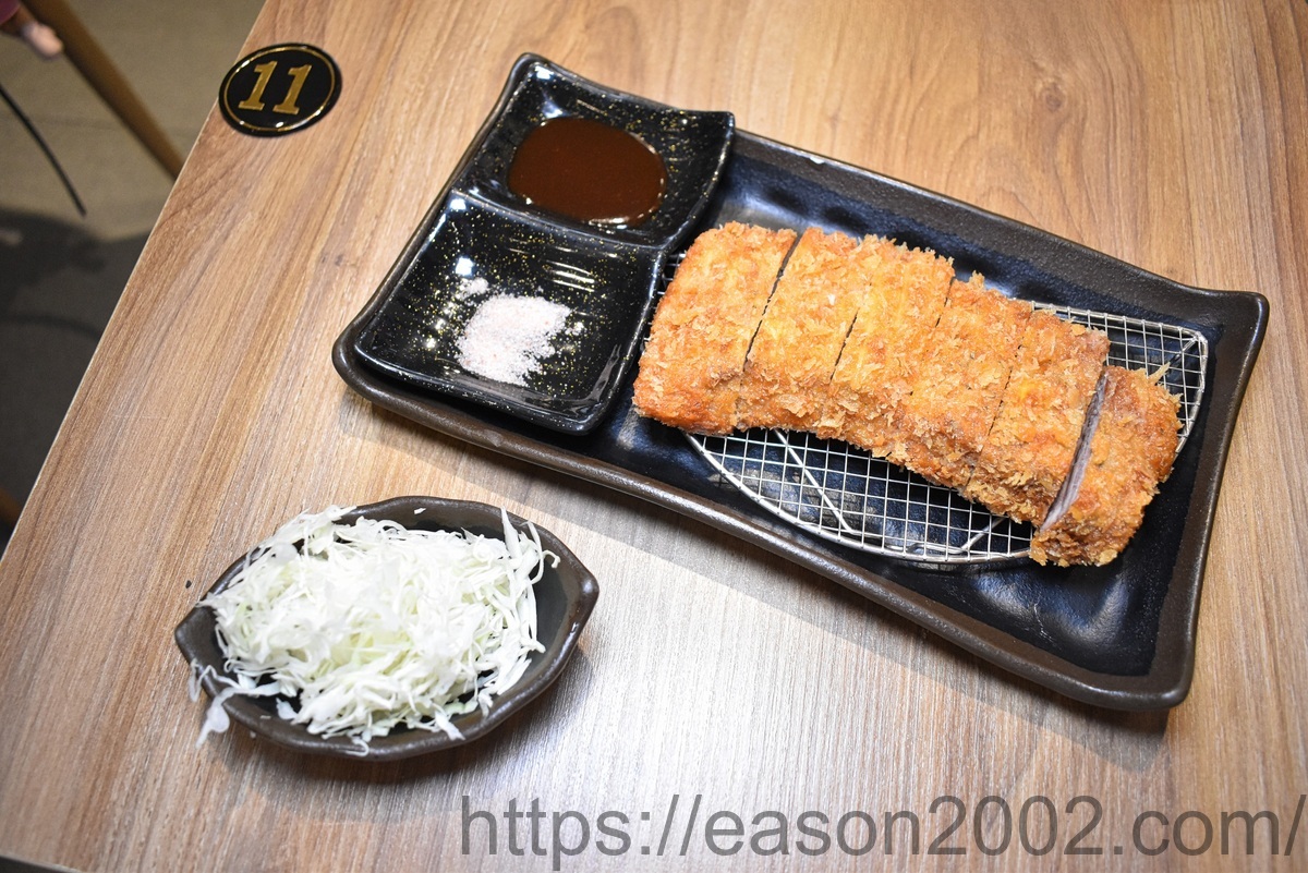 食材嚴選 ~ 特別使用三久食品無毒豬製作的「黃金豚勝」,外皮酥脆,口感扎實飽滿,附上特製佐醬,微鹹微甜的日式風味,輕沾玫瑰鹽,可以吃到「黃金豚勝」的原始香氣,完全沒有豬腥味,也沒有油炸過後的油耗味。