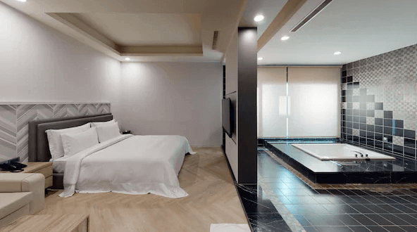 情趣元素:質感輕奢華的設計,浴室和房間之間的通透視覺,調情遊戲隨時上陣!