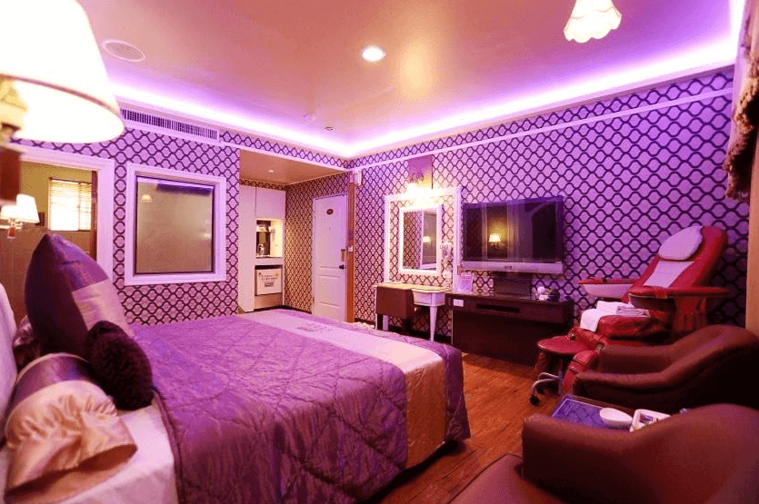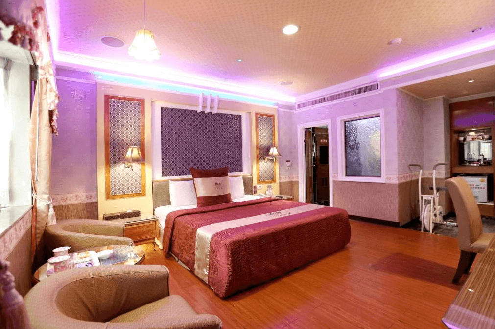 情趣元素:房間內就有八爪椅設備,加上燈光撫媚的氛圍,滿滿情趣元素!