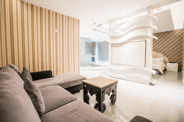 - 浴室和客廳之間是開放式設計,情慾挑逗很加分,非常適合情侶和夫妻