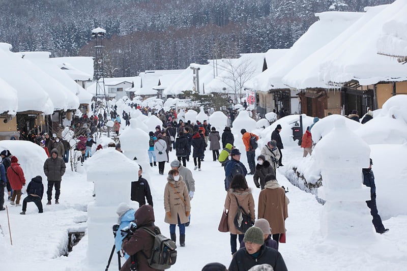位於福島縣南會津的「大內宿」,是江戶時期中的一個非常重要的驛站。由約30間以上的茅草屋組成,完整保留了江戶時代的樣貌,被日本選定為「國家重要傳統的建造物群保存地區」。這裡一年四季都會吸引各國旅客前來到訪,亦舉辦不同的祭典及活動,例如太鼓演奏、蕎麥麵大胃王比賽、煙花表演等精彩節目。特別是每年二月的雪祭,可以欣賞到被白雪覆蓋的景色及獨有的雪燈籠,絕色美景,一定會令人畢生難忘。參加祭典的同時,記得做足保暖措施,包括穿著雪靴、手套及帽子,讓你玩得開心又放心!