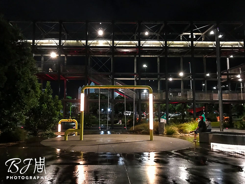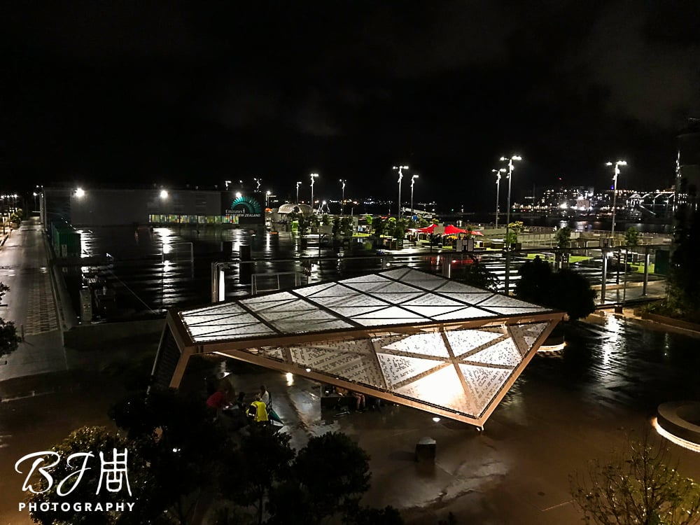 「基地空間」設有一座長條空橋,空橋一端可以看到「奧克蘭海灣大橋」,另一端可以遙望天空塔施放煙火。這裡人潮較少,觀賞效果卻奇佳,不怕被什麼大頭帽子手機自拍棍入鏡而掃興。