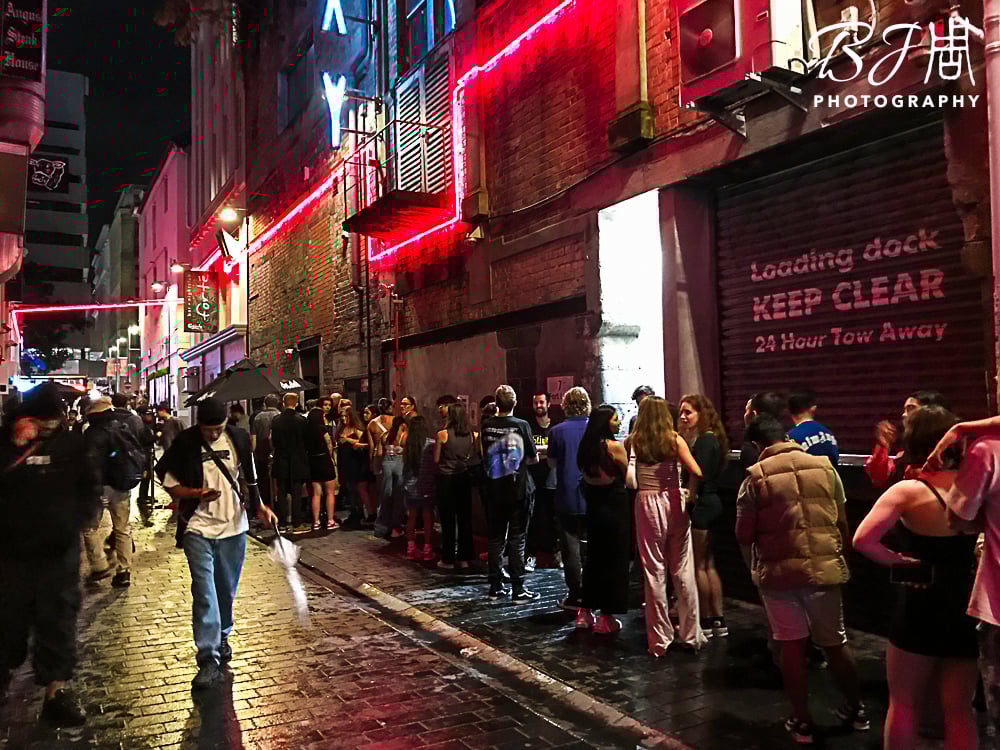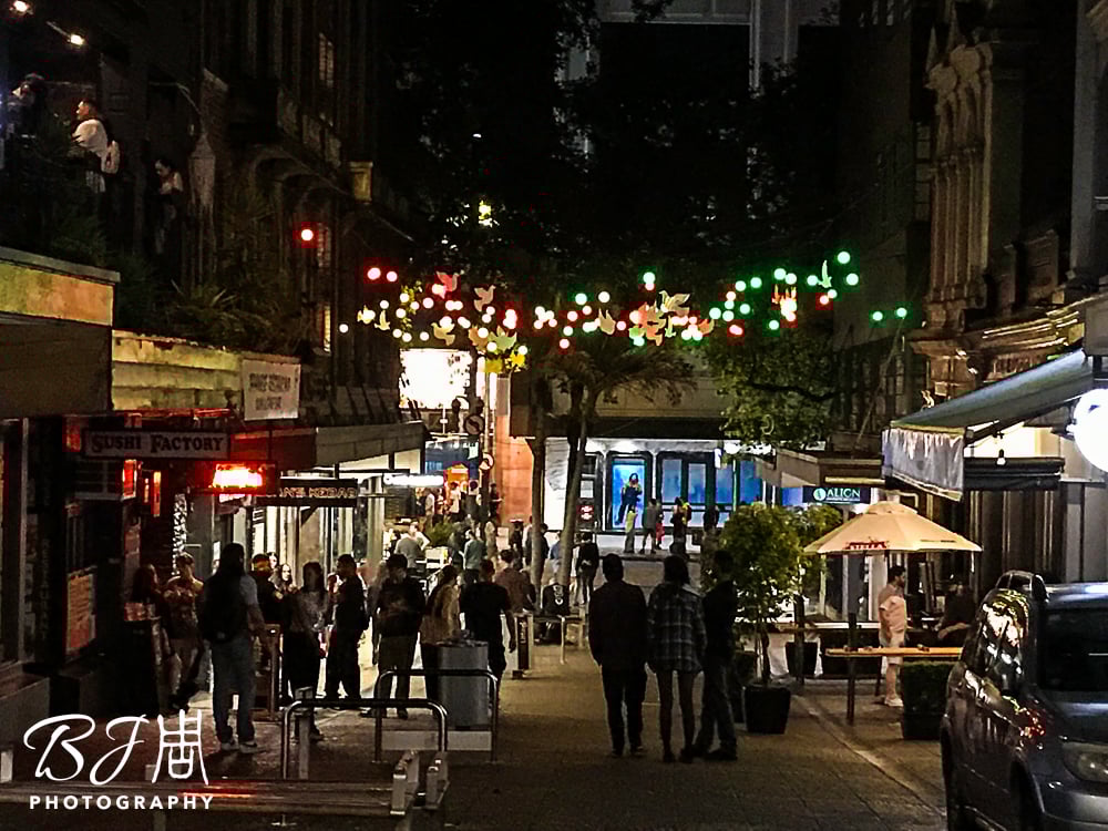 平日我不太可能半夜還在街上遊蕩,藉著除夕奧克蘭夜未眠,隨著人潮沿著市區中心大道徐徐前行,只見巷弄間的夜店酒吧前大排長龍,想來裡面正是管弦嘈雜、歌舞歡騰。
