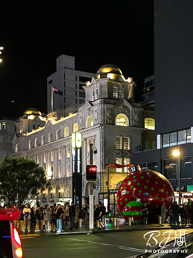 而且我跟你說,紐西蘭12月的半夜氣溫是個位數,又是在海濱,最慘的是那天夜裡還給我下雨!天啊,根本淒風苦雨,我穿了羽絨外套仍抖抖抖,全靠在夜市補充熱量。(幸好放煙火前雨停了)