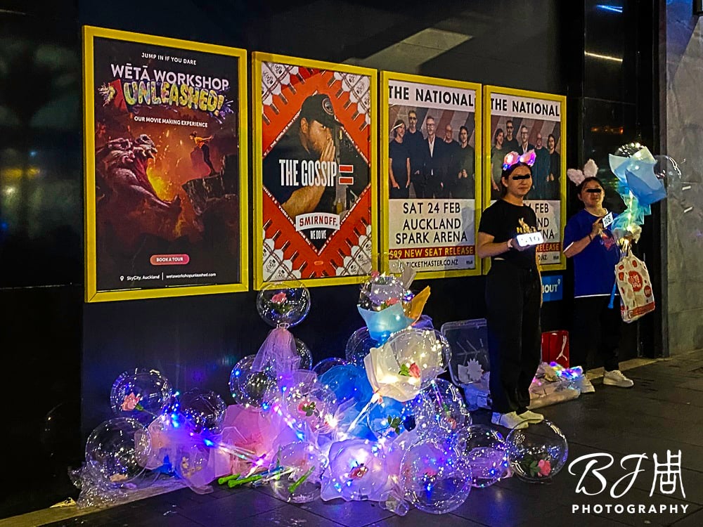 ▲奧克蘭天空塔是施放跨年煙火處,除夕夜到處賣這種內有花束的透明球▼