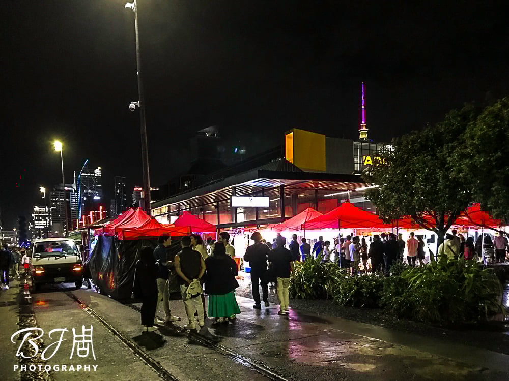 原來奧克蘭沒有一個固定地點的夜市,而是每天在不同地點開市擺攤。恰好去年除夕夜的夜市,就在「簡倉公園」。