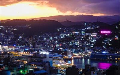 基隆的夜景五光十色、絢爛繽紛,映襯著港口的船隻及浪潮,呈現出港都特殊的風情。